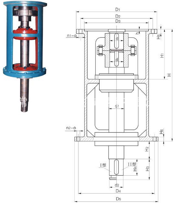 本系列機架適用于常壓容器,雙支點軸承,攪拌軸旋轉平穩與其它雙支點相比較結構緊湊外型尺寸小,標定型號以減速機輸出軸直徑為主參數,上聯軸器采用HL型彈性柱銷聯軸器,由本公司配套供應。