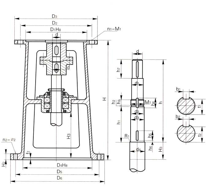 本機架系列的JXLD型適用于與XLD型擺線針傫行星減速機聯接,JBLD型適用于與BLD型擺線減速機相連接。為使攪拌軸與軸承室裝配,維修方便,同時對BLD2、BLD3、BLD4與相配的機架JBLD2、JBLD3、JBLD4的軸承室加大,使之與較粗的攪拌軸相一致。